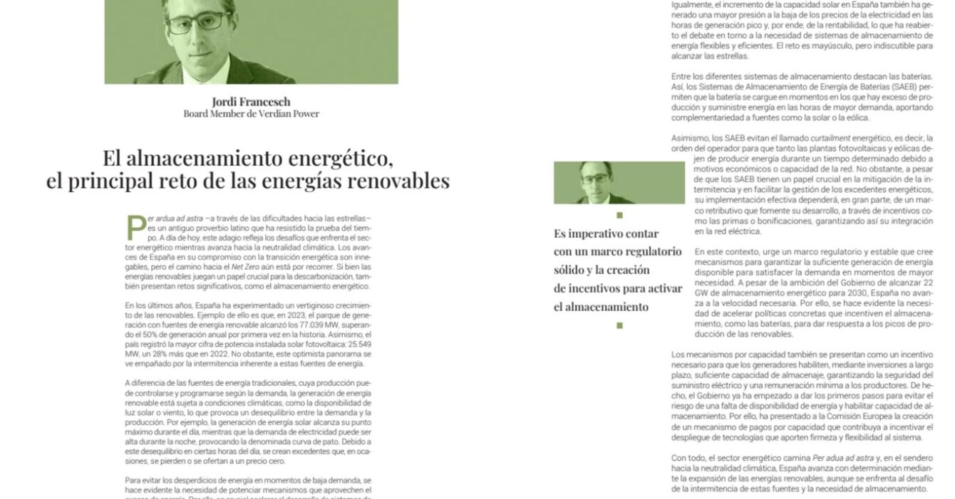 Per ardua ad astra (A través de las dificultades hacia las estrellas) es un antiguo proverbio latino que ha resistido la prueba del tiempo. A día de hoy, este adagio refleja los desafíos que enfrenta el sector energético mientras avanza hacía la neutralidad climática. Los avances de España en su compromiso con la transición energética son innegables, pero el camino hacia el Net Zero aún está por recorrer. Si bien las energías renovables juegan un papel crucial para la descarbonización, también presentan retos significativos, como el almacenamiento energético.