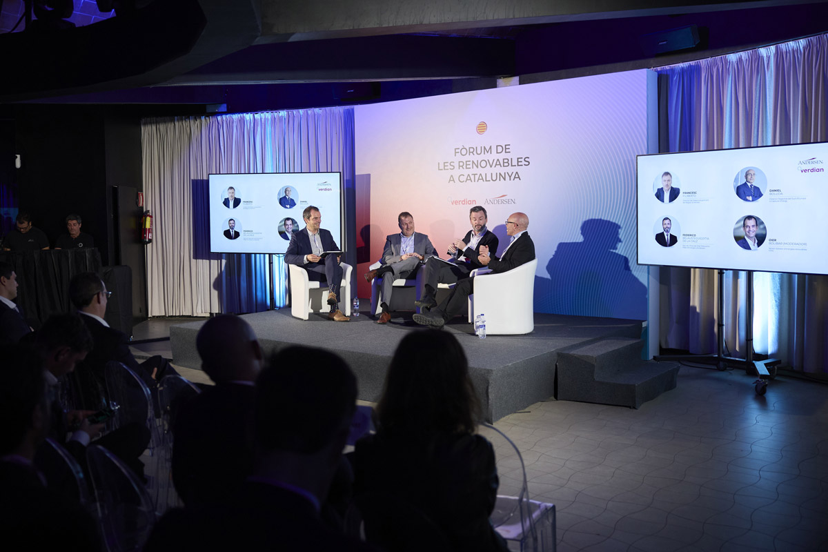 The programme continued with the roundtable discussion “Digitalisation and storage: the last opportunity for renewables in Catalonia”, featuring Francesc Filiberto, Head of Business Development at Verdian; Federico Belausteguigoitia, Partner in the Energy practice of Andersen’s Corporate / M&A department; and Daniel Boluda, Southern Europe Regional Director at Capture Energy. The session was moderated by Oier Bolibar, Senior Advisor for Renewable Energy and ESG.